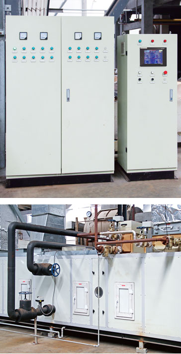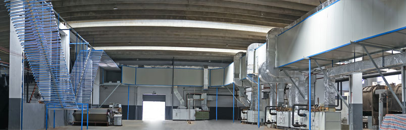 公司新研制開發(fā)的通過式低溫皮革干燥系統(tǒng)包含皮革懸掛鏈系統(tǒng),皮革干燥通道和干燥調(diào)溫空調(diào)機(jī)組。低溫皮革干燥系統(tǒng)將皮革干燥通道分為若干個區(qū)域進(jìn)行溫度和濕度的獨(dú)立控制,為皮革提供了一個均勻的、穩(wěn)定的、漸進(jìn)的干燥環(huán)境。低溫皮革干燥系統(tǒng)可限度地減少皮革干燥過程中的收縮并較高干燥效率。